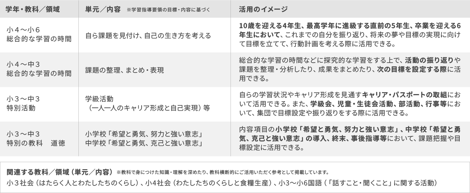 活用する教科や総合的な学習の時間の中でご活用頂けます。