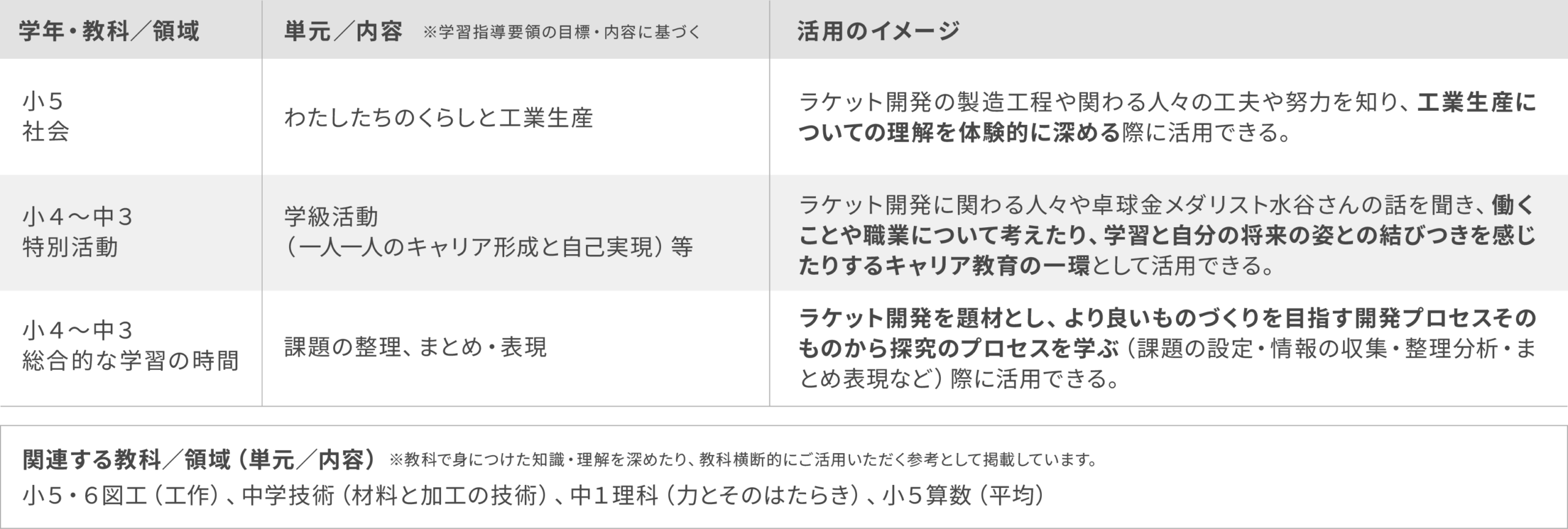 ※ラケットの材料は児童・生徒が各自で考えて持参します。